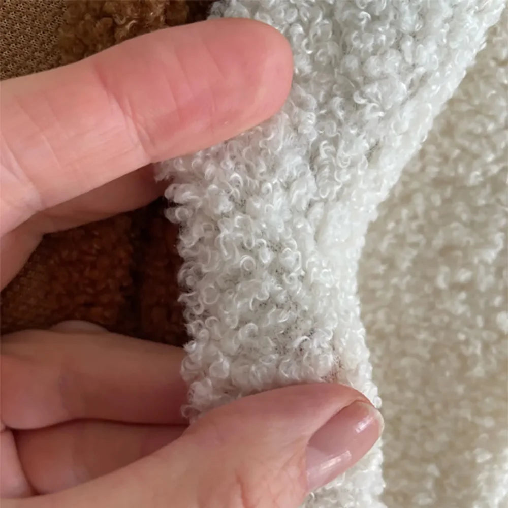 Tissu polaire de qualité supérieure en laine d'agneau synthétique, idéal pour vos projets de couture d'automne et d'hiver. Sa texture douce et pelucheuse rappelle la laine de mouton, tout en offrant la facilité d'entretien du polyester.